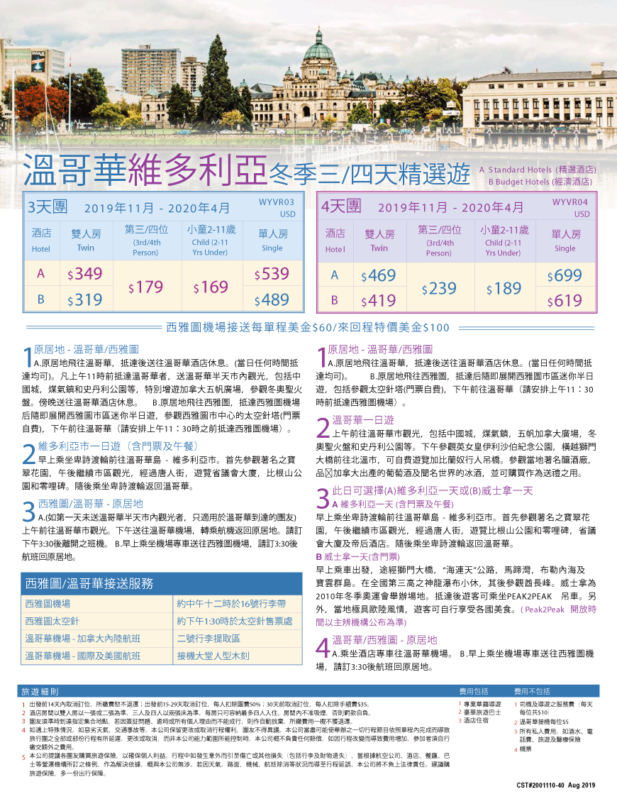WYVR03 或 WYVR04 溫哥華維多利亞冬季三/四天精選遊 3或4日游下载详细行程