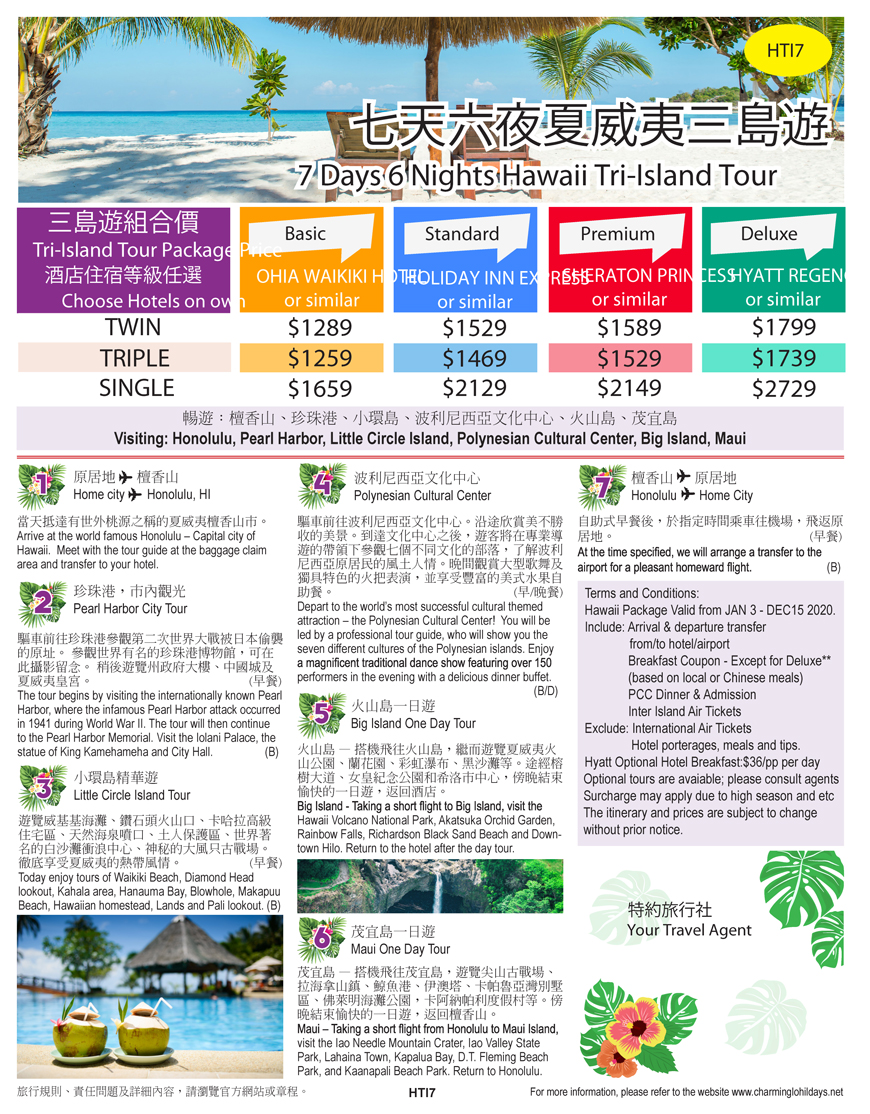HTI7 七天六夜夏威夷三島遊